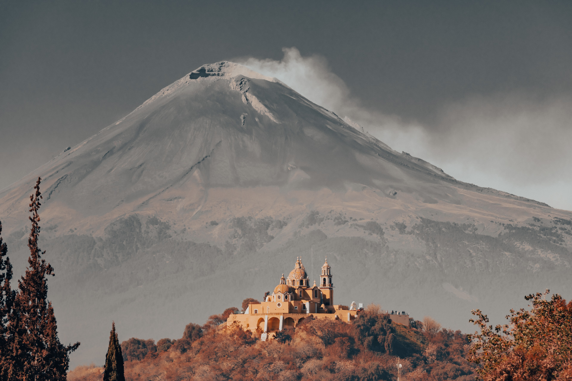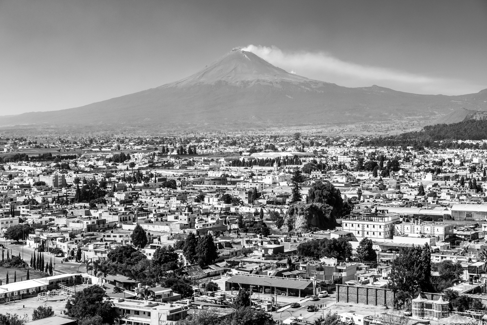 Besonders beeindruckt haben uns in Puebla und Cholula die Vulkane. Die Stadt ist umgeben von vier atemberaubenden Vulkanen. Im Westen, sehr Nahe an der Stadt liegend, der Popocatépetl (5465m) und der Iztaccíhuatl (5230m), im Norden etwas weiter weg der La Malinche (4420) und im Osten der Pico de Orizaba (5610 m). Natürlich wollte es sich Bryan auch nicht nehmen lassen, diese Kulisse fotografisch festzuhalten. Ein wunderschönes Motiv gibt die Kirche von Cholula vor dem beeindruckenden Popocatépetl ab.