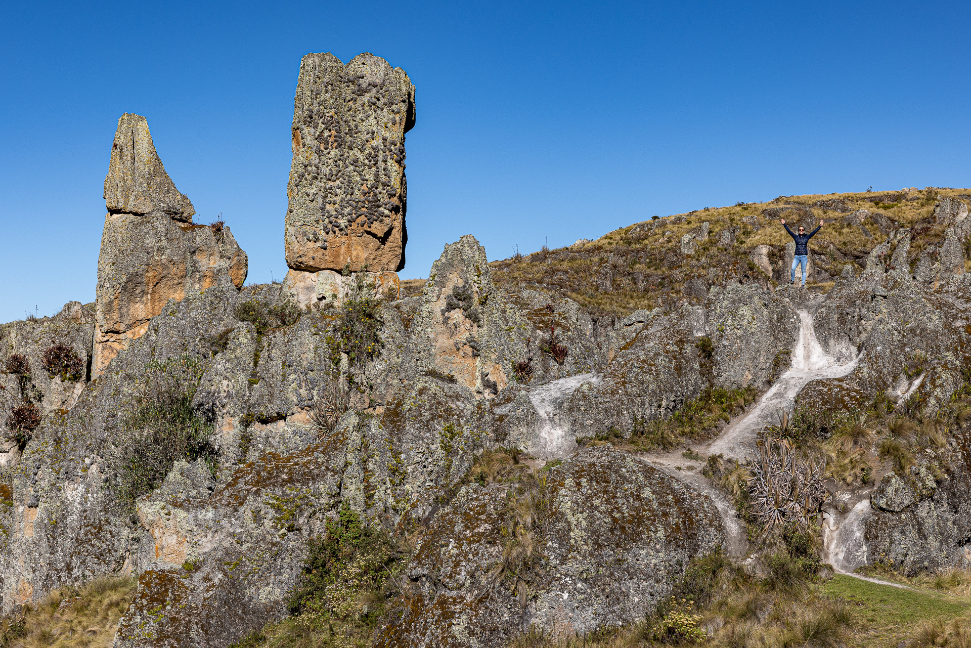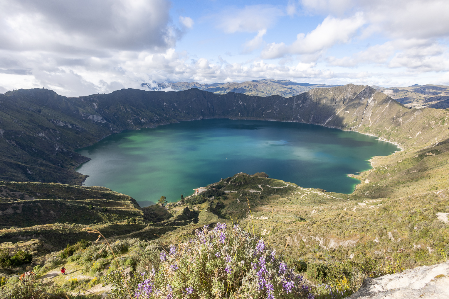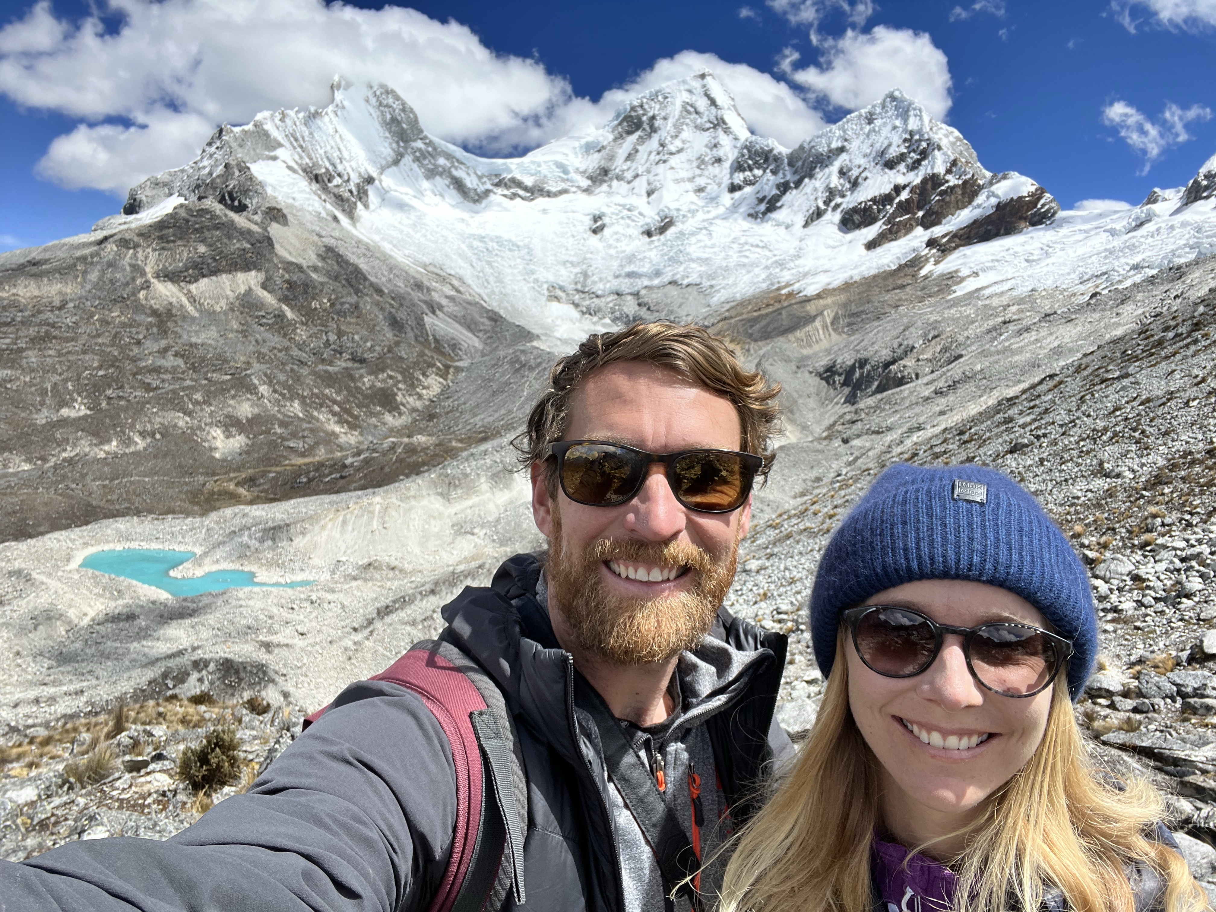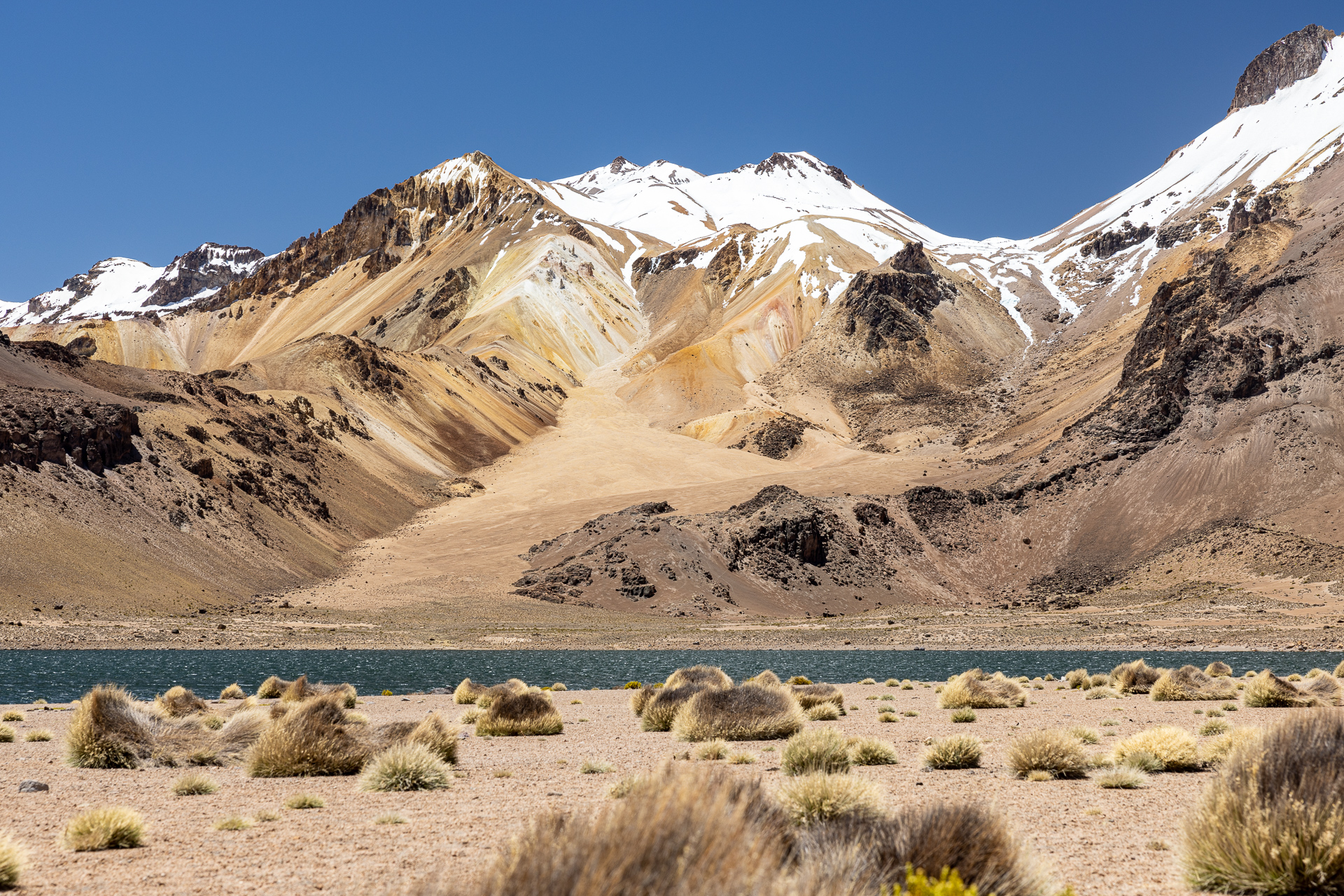 Als wir um acht loslaufen, schlägt uns ein bissiger Wind entgegen. Wir frieren und das obwohl wir Mütze und warme Kleidung tragen. Der Wind peitscht uns regelrecht um die Ohren. Wir befinden uns wieder einmal auf über 3000 Meter und das Klima zeigt uns dies erbarmungslos. Aufgeben ist aber keine Option. Trotz den widrigen Umständen stapfen wir bestimmt dem über 20 Kilometer langen Weg entlang. Zum Glück geht es teilweise fast senkrecht bergauf. Das wärmt innerlich. Nach etwas mehr als einer Stunde erreichen wir die auf fast 4000 Metern gelegene Lagune, welche auch die Grenze zu Chile bildet. Der Wind hat nicht nachgelassen und wir kommen nur langsam voran. Wir schiessen einige Bilder und beschliessen noch zur zweiten Lagune zu laufen, die komplett auf chilenischem Boden liegt. Belohnt werden wir mit einer magischen Aussicht auf die Lagune und weitere Vulkane. Nach mehr als drei Stunden in diesem eisigen Wind geben wir auf und treten den Rückweg an. Trotz wunderschöner Umgebung zehrt dieses Wetter an unseren Nerven und wir sind froh, als wir nach sechs Stunden wandern endlich Beat aus der Ferne sehen. Zum Glück geht es morgen zu den Thermalquellen.