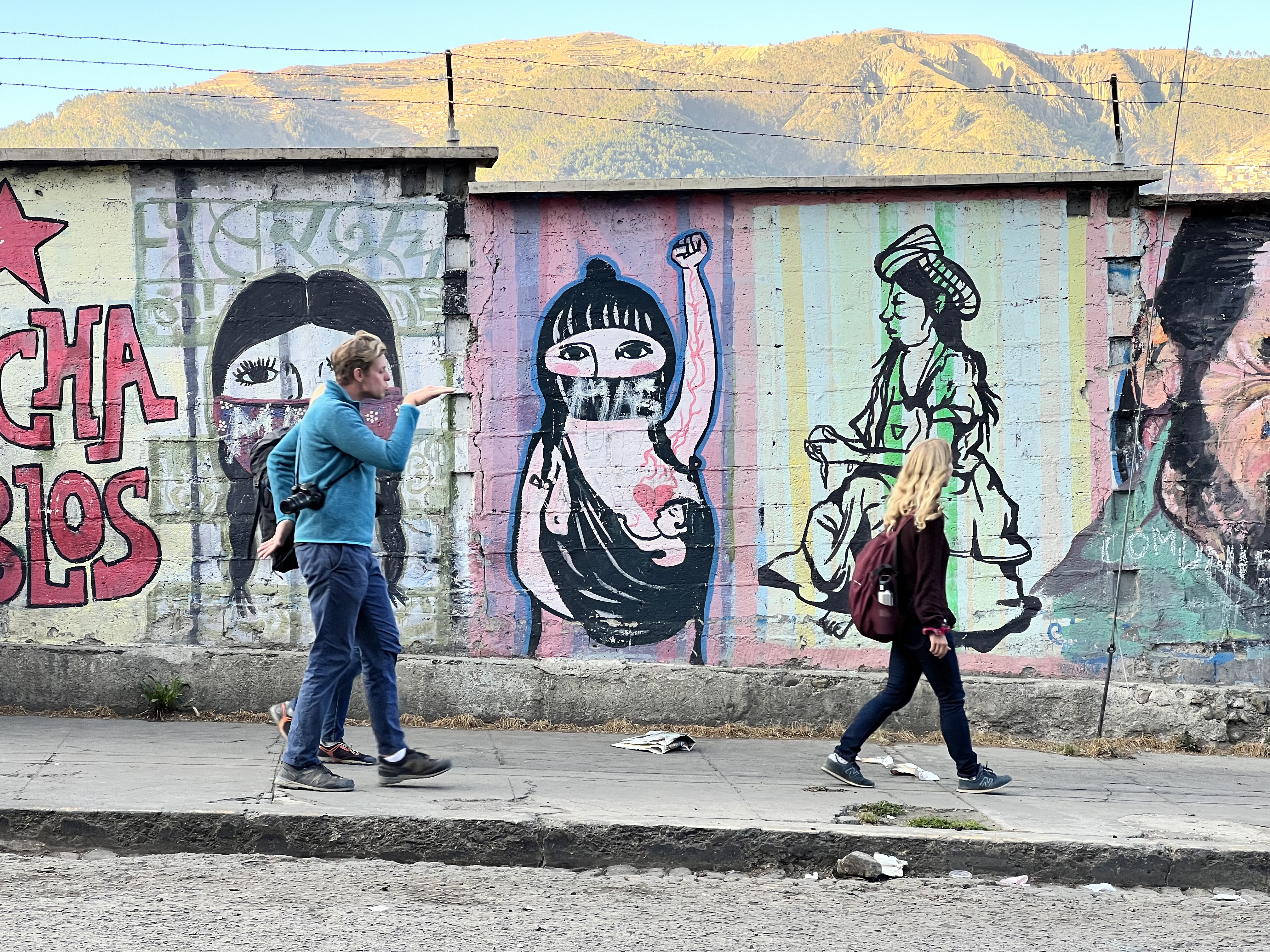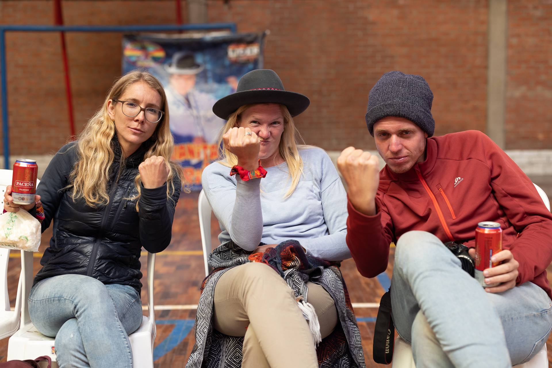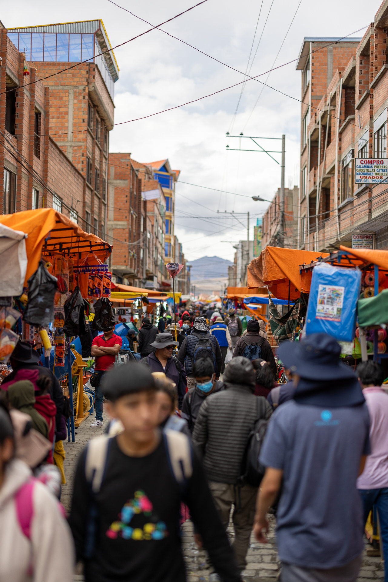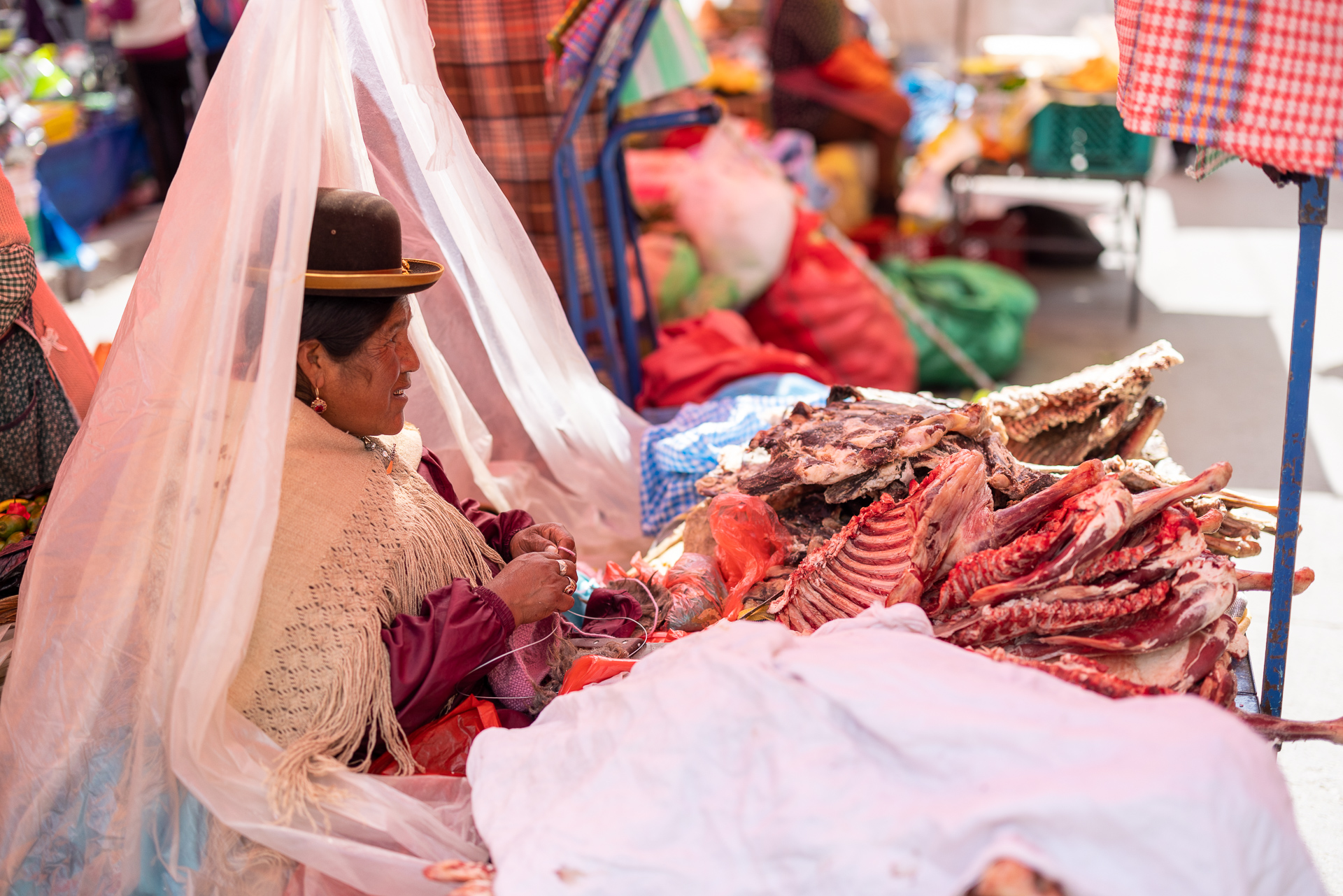 Angekommen in La Paz erkunden wir die Umgebung und bereiten uns auf die Reunion mit Nadle und Tom vor. Sie treffen zwei Tage später in La Paz ein und reisen dann gemeinsam mit uns weiter. Da darf ein gutes Essen nicht fehlen. Fleisch ist in Bolivien unglaublich günstig und so gibt es Rindsfilet vom Grill, Kartoffelgratin, eine gute Flasche Wein und ein ordentliches Lagerfeuer. Der perfekte Start. Am nächsten Tag besuchen wir den grössten Freiluftmarkt der Welt. Er befindet sich in den Strassen von El Alto und erstreckt sich über 25 Quadratkilometer. Verkauft wird alles: Autoteile, Stoffe, Lebensmittel, Haushaltswaren oder auch Kinderspielzeug. Erschlagen von der Anzahl an Ständen und Menschenmengen flüchten wir zum zweiten Programmpunkt dieses Tages: Cholita-Wrestling. Der Begriff Cholita steht für die indigenen Frauen in Bolivien. Lange wurden sie in der Gesellschaft unterdrückt und nicht ernst genommen. Eine der Initiativen, um sich mehr Gehör und Respekt zu verschaffen, ist Wrestling. Ganz nach dem Motto wir indigenen Frauen können alles, aber wirklich alles, auch tun. Wenn auch mittlerweile etwas touristisch, ist die Show super unterhaltsam und sehenswert. Die Kämpfe finden in einer ungeheizten Halle in El Alto statt. Daher lohnt es sich warme Kleidung mitzubringen. In traditioneller Kleidung stürzen sich die Frauen aufeinander und schenken sich rein gar nichts. Ein Spektakel. Nach eineinhalb Stunden machen wir uns fröstelnd auf den Weg nach Hause. Dafür müssen wir die Stadt komplett durchqueren. Nach dreimal umsteigen in der Gondelbahn und einer rasanten Fahrt mit dem Colectivo erreichen wir müde, aber zufrieden unseren Campingplatz. Das war ein gelungener Auftakt in Bolivien. Nächster Stopp: Death Road