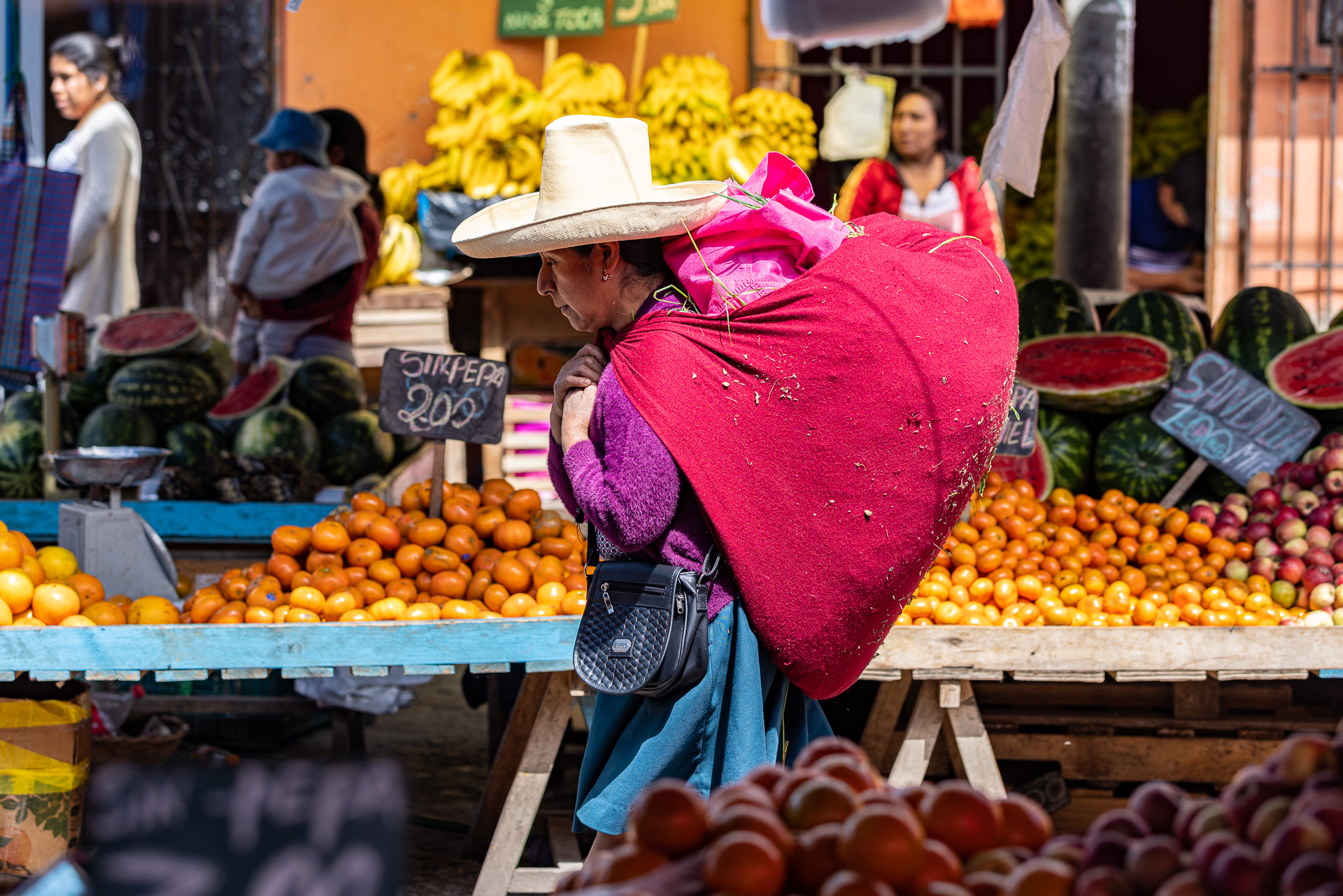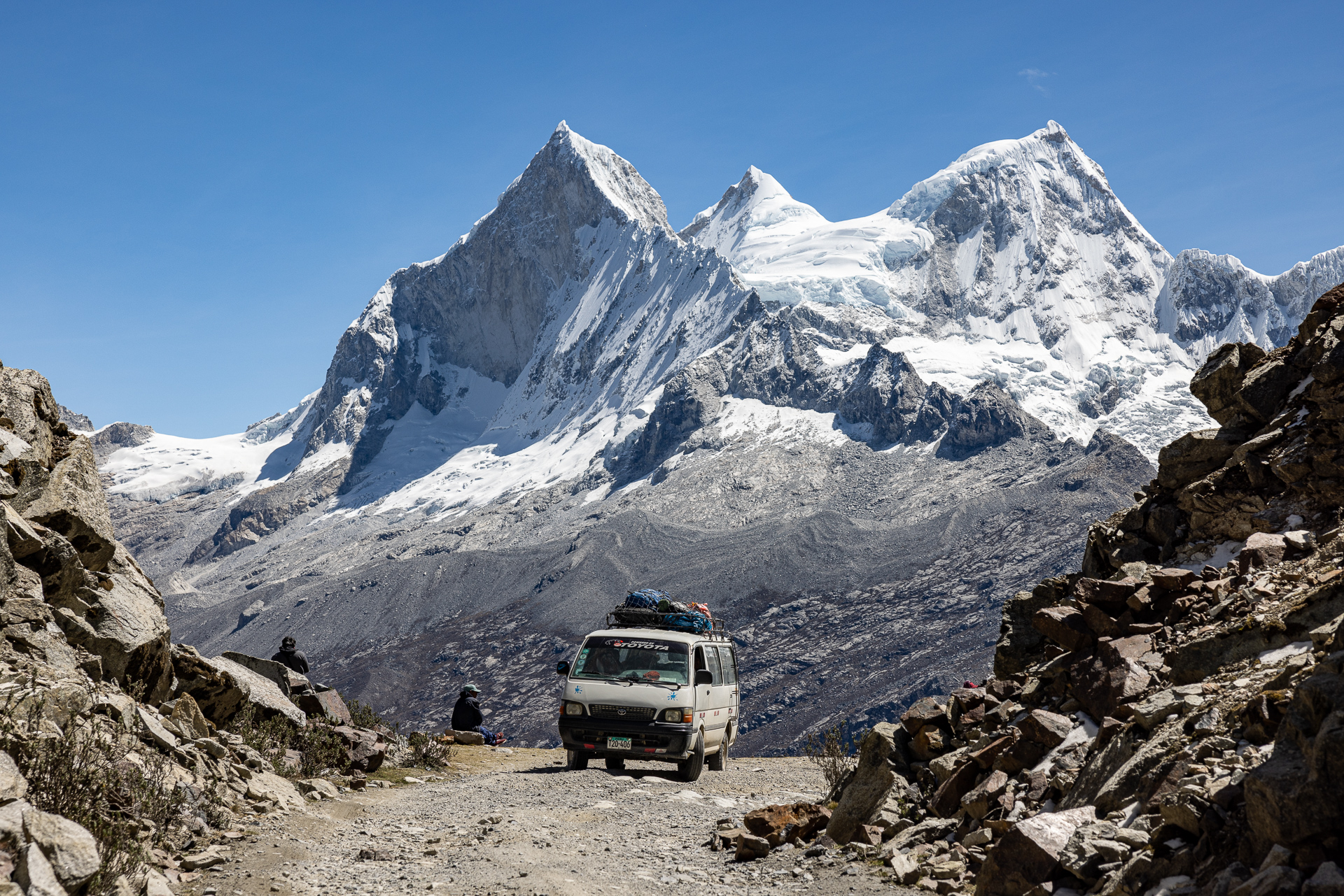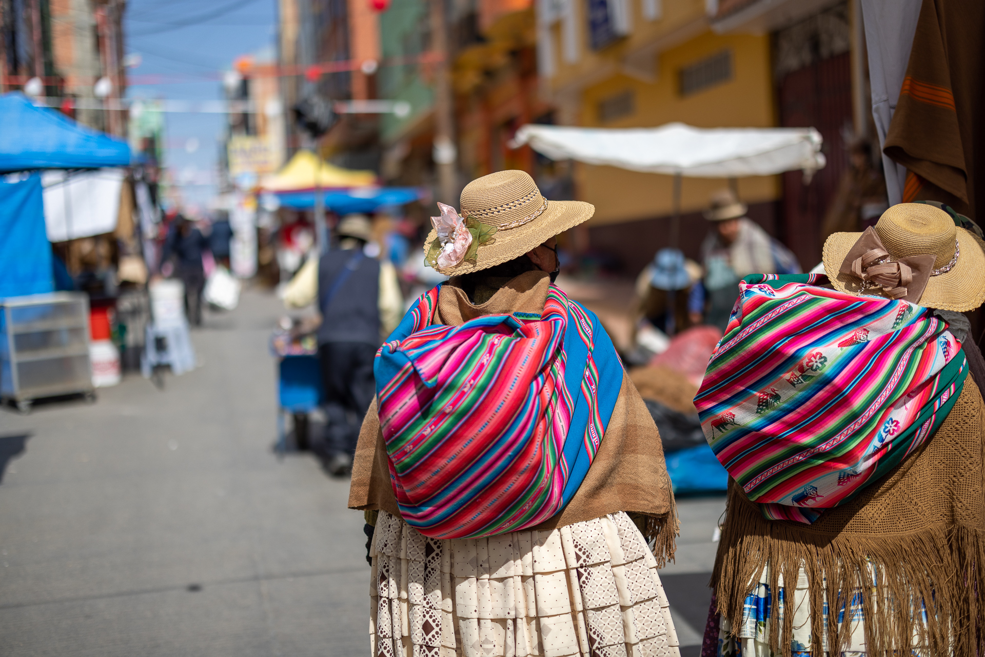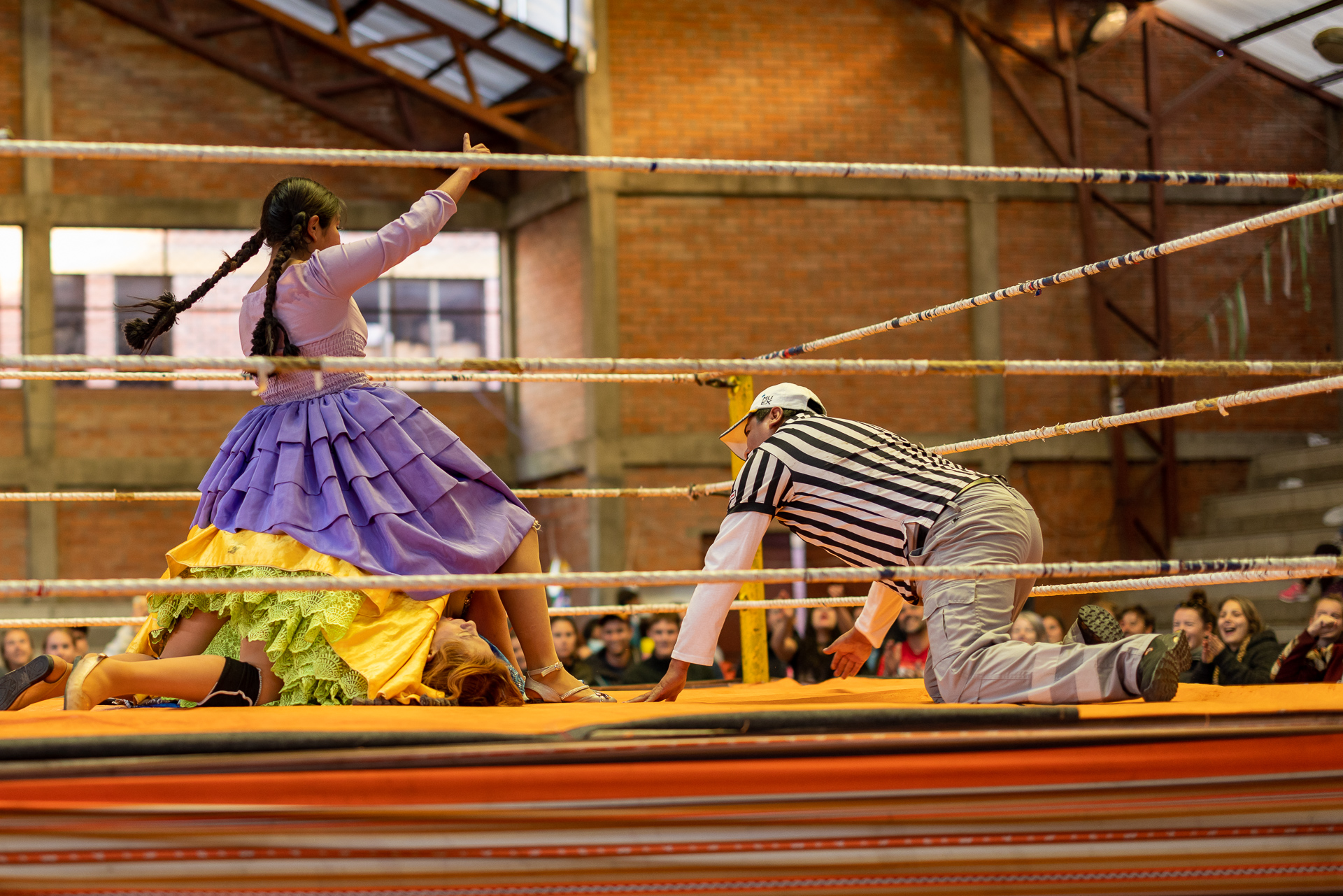 Angekommen in La Paz erkunden wir die Umgebung und bereiten uns auf die Reunion mit Nadle und Tom vor. Sie treffen zwei Tage später in La Paz ein und reisen dann gemeinsam mit uns weiter. Da darf ein gutes Essen nicht fehlen. Fleisch ist in Bolivien unglaublich günstig und so gibt es Rindsfilet vom Grill, Kartoffelgratin, eine gute Flasche Wein und ein ordentliches Lagerfeuer. Der perfekte Start. Am nächsten Tag besuchen wir den grössten Freiluftmarkt der Welt. Er befindet sich in den Strassen von El Alto und erstreckt sich über 25 Quadratkilometer. Verkauft wird alles: Autoteile, Stoffe, Lebensmittel, Haushaltswaren oder auch Kinderspielzeug. Erschlagen von der Anzahl an Ständen und Menschenmengen flüchten wir zum zweiten Programmpunkt dieses Tages: Cholita-Wrestling. Der Begriff Cholita steht für die indigenen Frauen in Bolivien. Lange wurden sie in der Gesellschaft unterdrückt und nicht ernst genommen. Eine der Initiativen, um sich mehr Gehör und Respekt zu verschaffen, ist Wrestling. Ganz nach dem Motto wir indigenen Frauen können alles, aber wirklich alles, auch tun. Wenn auch mittlerweile etwas touristisch, ist die Show super unterhaltsam und sehenswert. Die Kämpfe finden in einer ungeheizten Halle in El Alto statt. Daher lohnt es sich warme Kleidung mitzubringen. In traditioneller Kleidung stürzen sich die Frauen aufeinander und schenken sich rein gar nichts. Ein Spektakel. Nach eineinhalb Stunden machen wir uns fröstelnd auf den Weg nach Hause. Dafür müssen wir die Stadt komplett durchqueren. Nach dreimal umsteigen in der Gondelbahn und einer rasanten Fahrt mit dem Colectivo erreichen wir müde, aber zufrieden unseren Campingplatz. Das war ein gelungener Auftakt in Bolivien. Nächster Stopp: Death Road