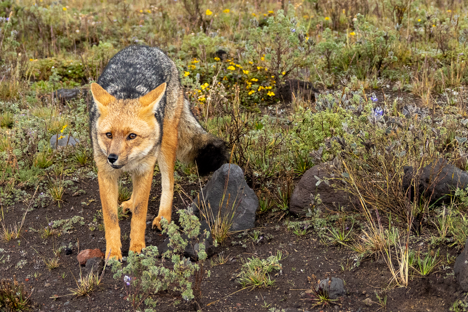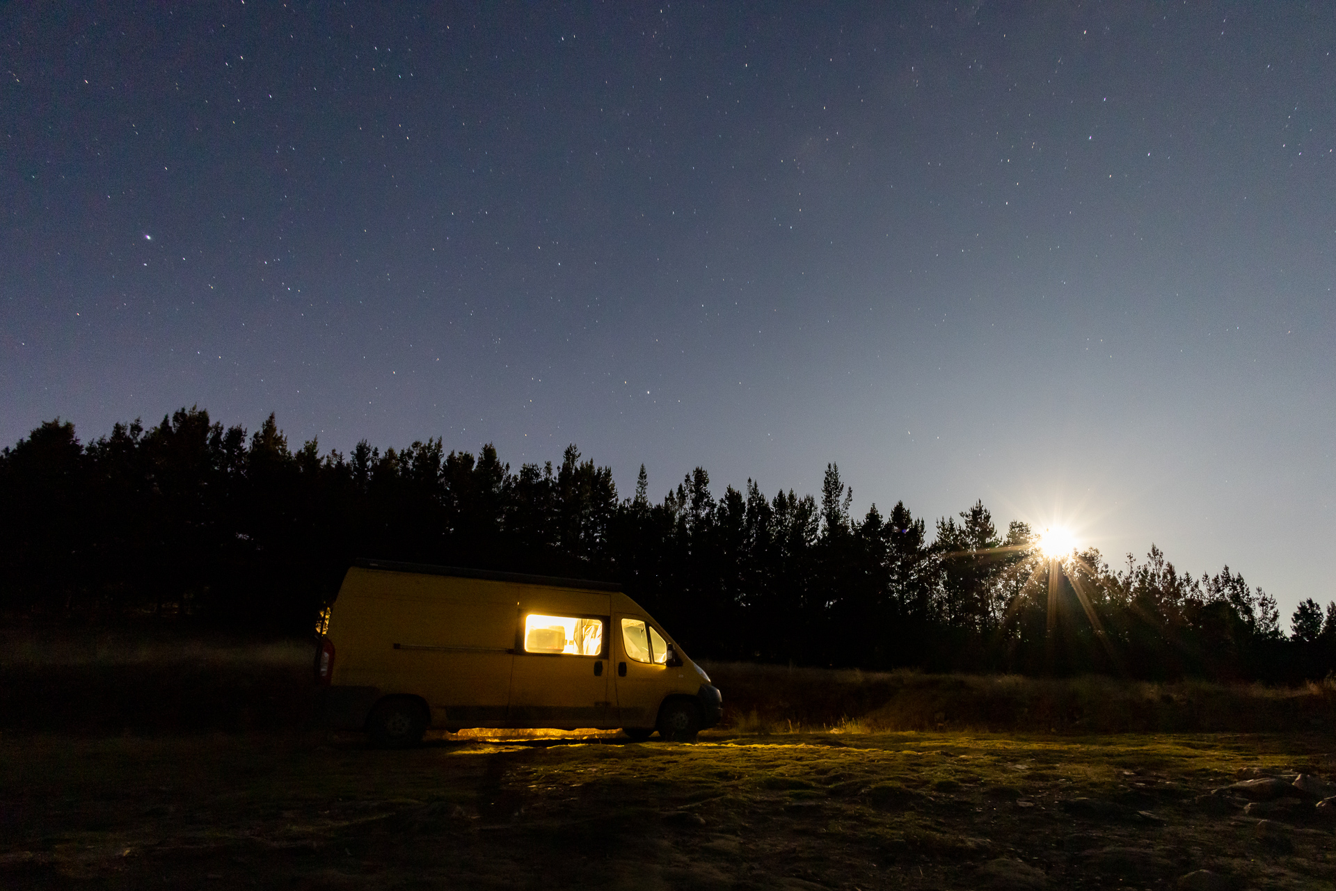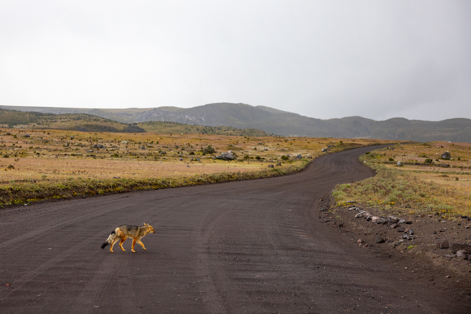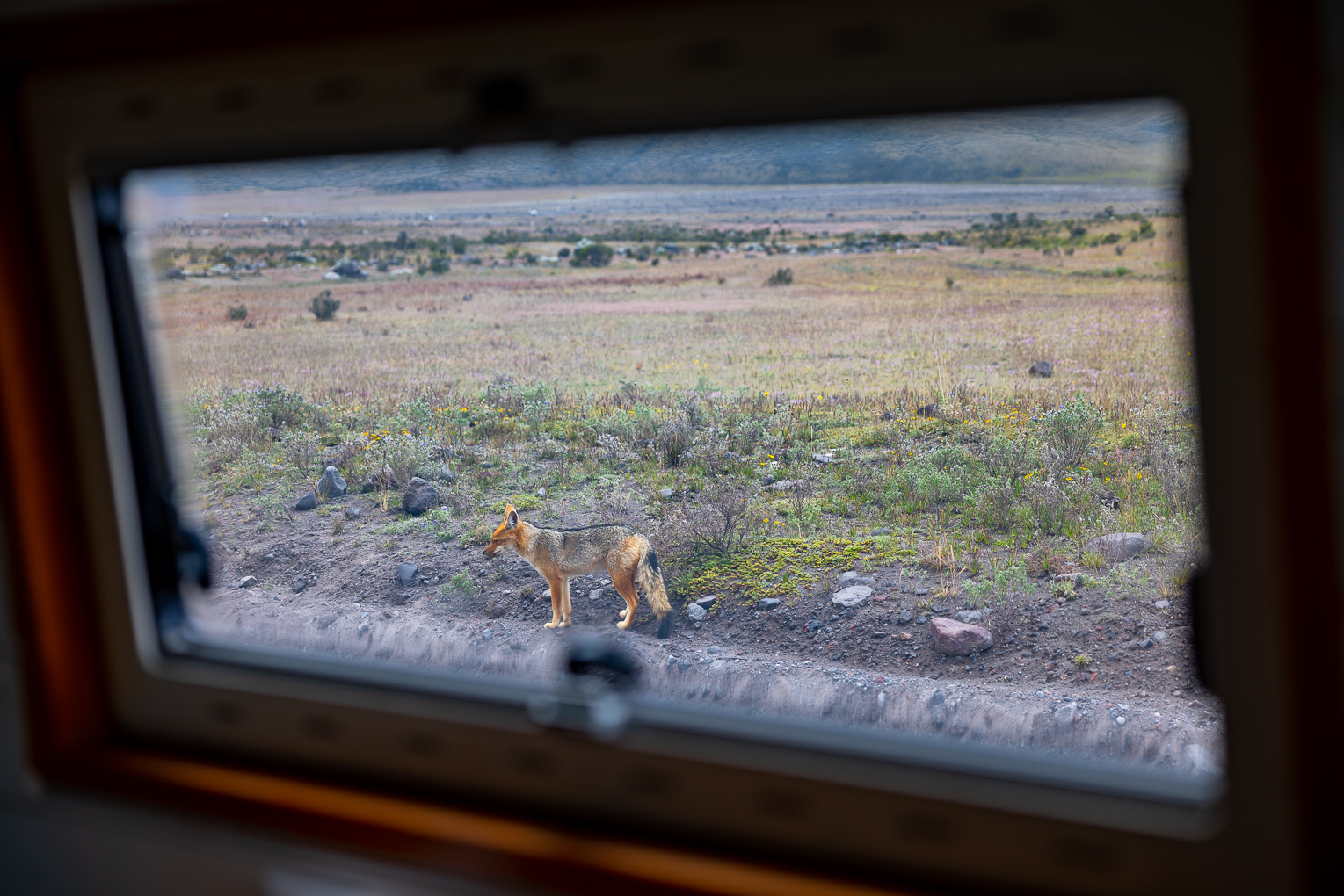 Nach zwei Stunden Fahrt durch das Nichts erreichen wir den Eingang des Nationalparks. Im Kontrollhäuschen sitzt niemand. Auch sonst ist weit und breit niemand zu sehen. Wir fahren rein und sind schon auf den ersten Metern begeistert. Die Strasse ist gesäumt von Vulkanen und Lagunen, die Natur fast unberührt und die Nachmittagsstimmung einmalig. Wir legen spontan einen Stopp ein und spazieren zu einem Aussichtspunkt. Die Vulkane und die raue Umgebung wirken wie aus einer anderen Welt. Wir geniessen die Stimmung und machen uns dann auf den Weg zu unserem Schlafplatz. Im Nationalpark darf man überall campen. Wir haben uns einen Platz neben einem Geysir ausgesucht, welcher auch der Startpunkt zur bevorstehenden Lagunenwanderung ist. Als wir eintreffen ist es schon kurz vor sechs und bitterkalt. In der Nacht sinken die Temperaturen auf minus 8 Grad. Trotzdem nehmen wir unsere Heizung nicht in Betrieb, denn nicht nur Tanken ist in Bolivien schwierig auch das Auffüllen von ausländischen Gasflaschen ist staatlich verboten. Das heisst für uns Gas sparen. Wir mummeln uns ein und hüpfen früh ins Bett. Am nächsten Tag steht Wandern auf dem Programm.