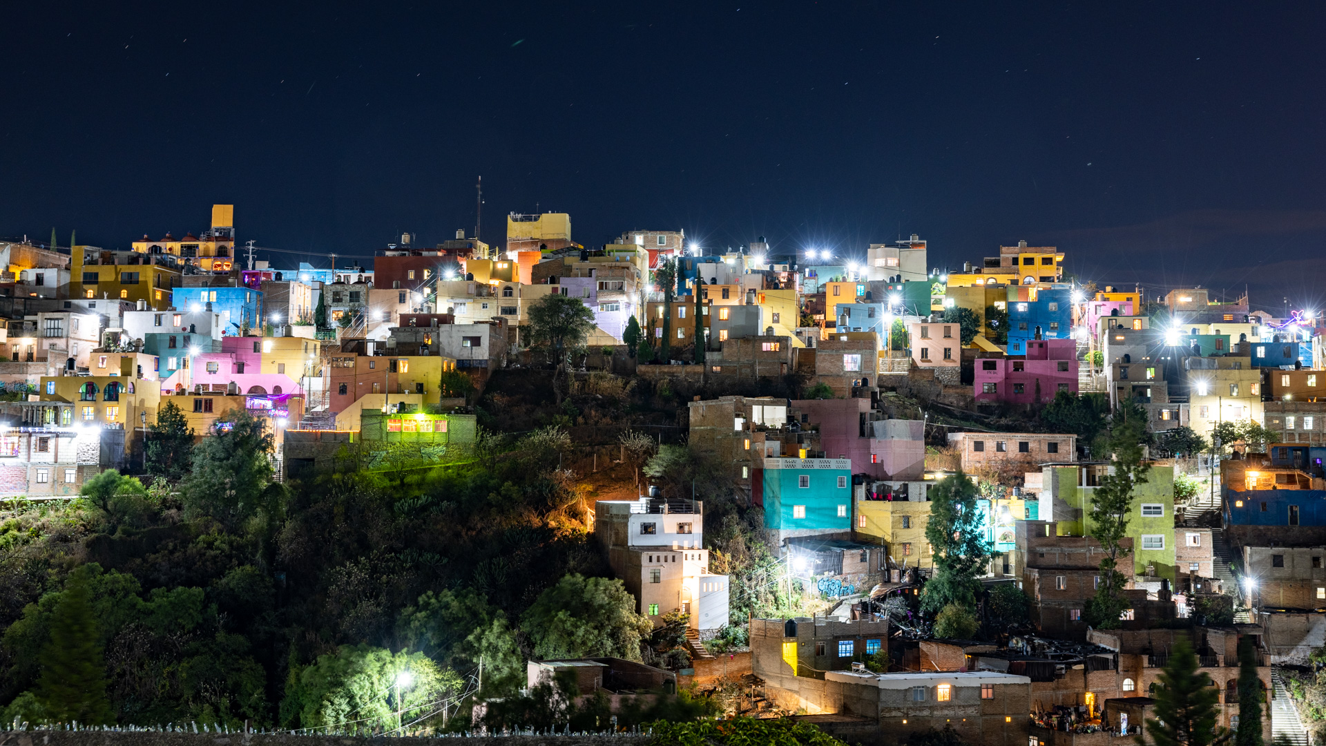 Auf die Empfehlung unseres Free Walking Tour Guides fällten wir spontan den Entschluss, noch einen Zwischenstopp in Guanajuato einzulegen. Dies sei seiner Meinung nach die zweitschönste Stadt in Mexiko. Auf iOverlander fanden wir erneut einen Stellplatz in Stadtnähe. Zu unserem Vorteil waren unsere Campingnachbarn schon dort und gaben uns Tipps für die Anfahrt. Denn wie könnte es anders sein: Um dort hinzugelangen, muss man sich zuerst eine extrem steile und enge Pflasterstein-Strasse hochkämpfen. Gar nicht so leicht, wenn man drei Tonnen schwer, sechs Meter lang und zwei Meter breit ist. Im ersten Gang, mit viel Geduld und nach einem kriminellen Anfahrmanöver am Hang – ja natürlich gab es auch noch Gegenverkehr – haben wir es geschafft. Belohnt wurden wir mit einer schönen Aussicht auf die farbigen Häuschen der Stadt.