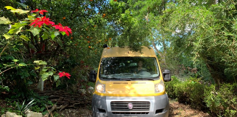Auf die Empfehlung unseres Free Walking Tour Guides fällten wir spontan den Entschluss, noch einen Zwischenstopp in Guanajuato einzulegen. Dies sei seiner Meinung nach die zweitschönste Stadt in Mexiko. Auf iOverlander fanden wir erneut einen Stellplatz in Stadtnähe. Zu unserem Vorteil waren unsere Campingnachbarn schon dort und gaben uns Tipps für die Anfahrt. Denn wie könnte es anders sein: Um dort hinzugelangen, muss man sich zuerst eine extrem steile und enge Pflasterstein-Strasse hochkämpfen. Gar nicht so leicht, wenn man drei Tonnen schwer, sechs Meter lang und zwei Meter breit ist. Im ersten Gang, mit viel Geduld und nach einem kriminellen Anfahrmanöver am Hang – ja natürlich gab es auch noch Gegenverkehr – haben wir es geschafft. Belohnt wurden wir mit einer schönen Aussicht auf die farbigen Häuschen der Stadt.
